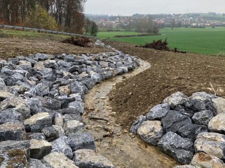 Dans le cadre de la création de la LGV Paris-Strasbourg, le ruisseau du Hohlgasse sur la commune de Sarraltroff, a été dévié et busé pour passer sous la LGV. La zone des travaux étant localisé au droit d’une zone environnementale sensible, des aménagements spéciaux comme des enrochements et des techniques de génie végétal ont été mises en œuvre. Malheureusement, ces aménagements ont subi des dégâts important avec le temps. Dans ce contexte, le client a mandaté ARCHIMED Environnement pour dimensionner et réaliser la maîtrise d’oeuvre de travaux de restauration écologique de ce ruisseau